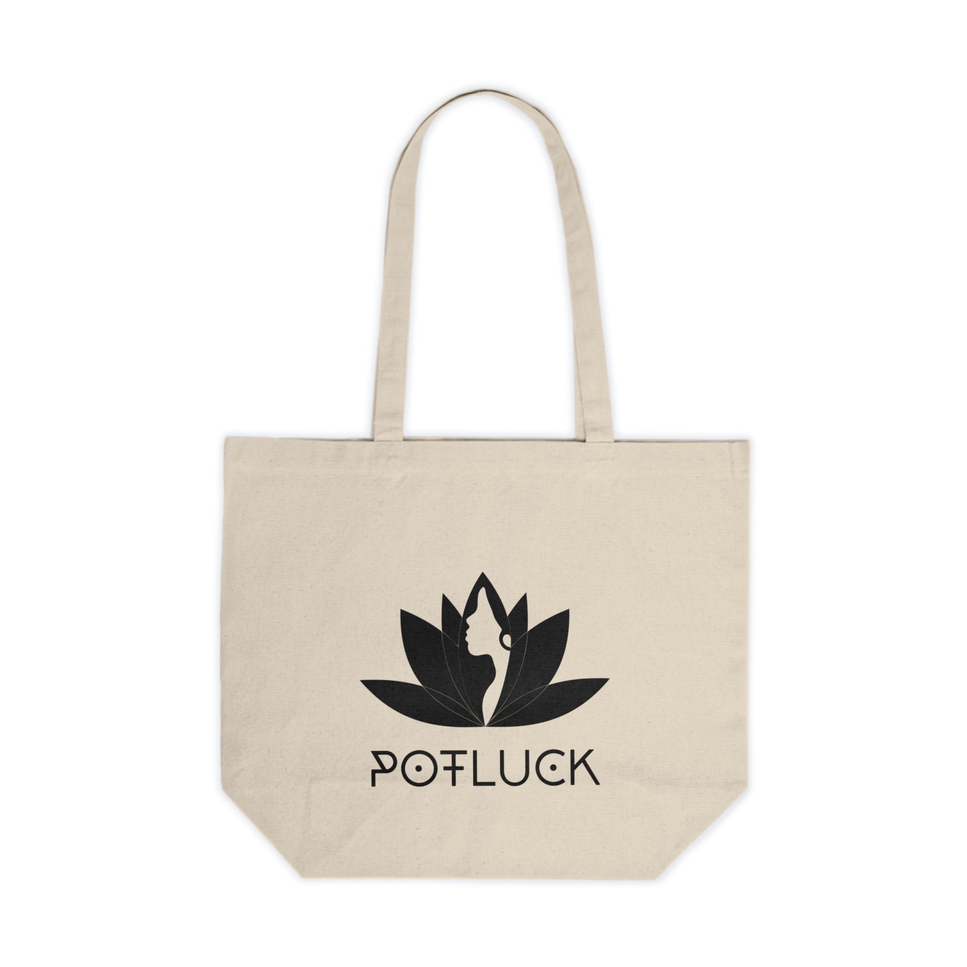 Choose our Potluck Logo Tote Bag for its durability, functionality, and eco-friendly appeal. It's an essential accessory that seamlessly combines fashion and utility, making it the perfect addition to your everyday life.