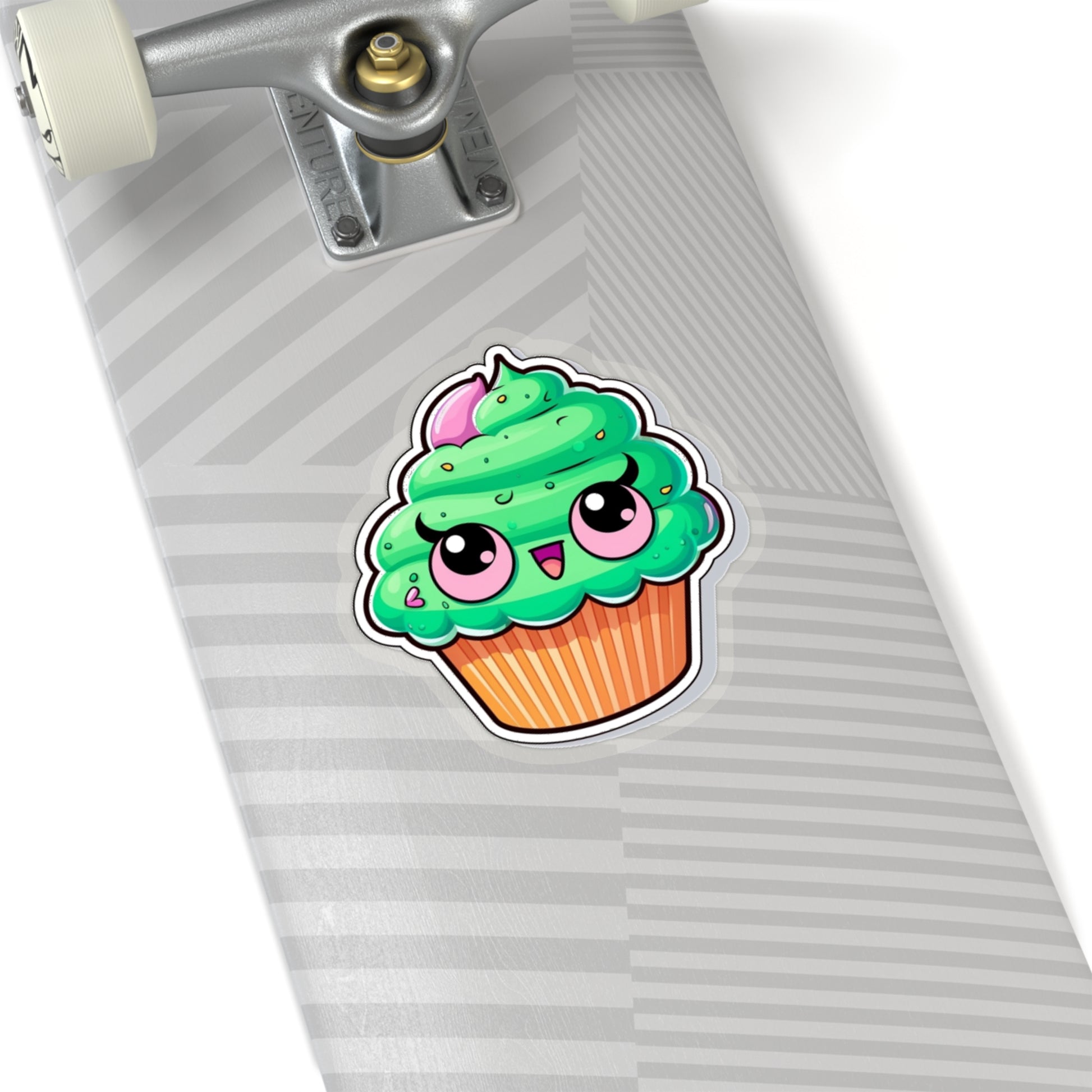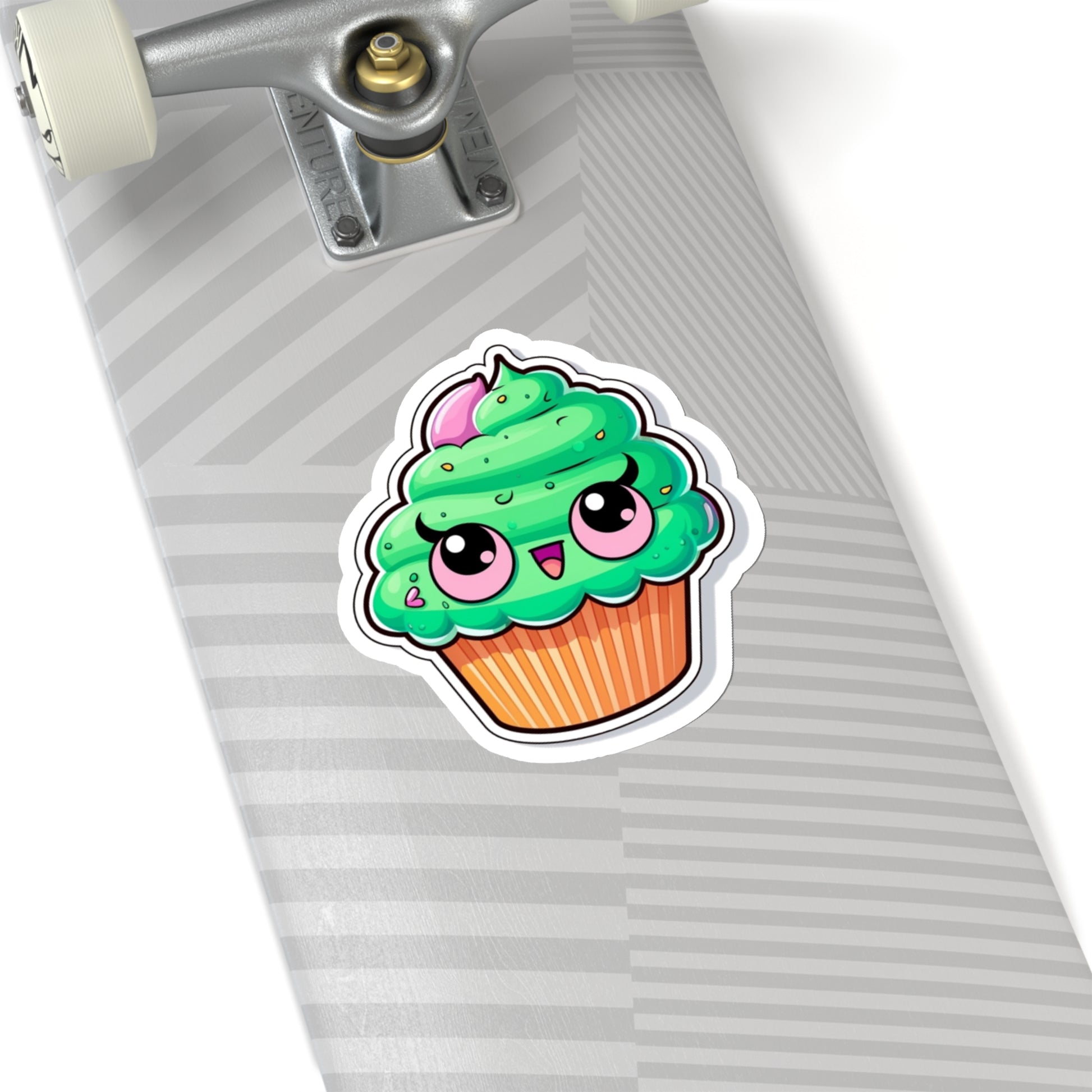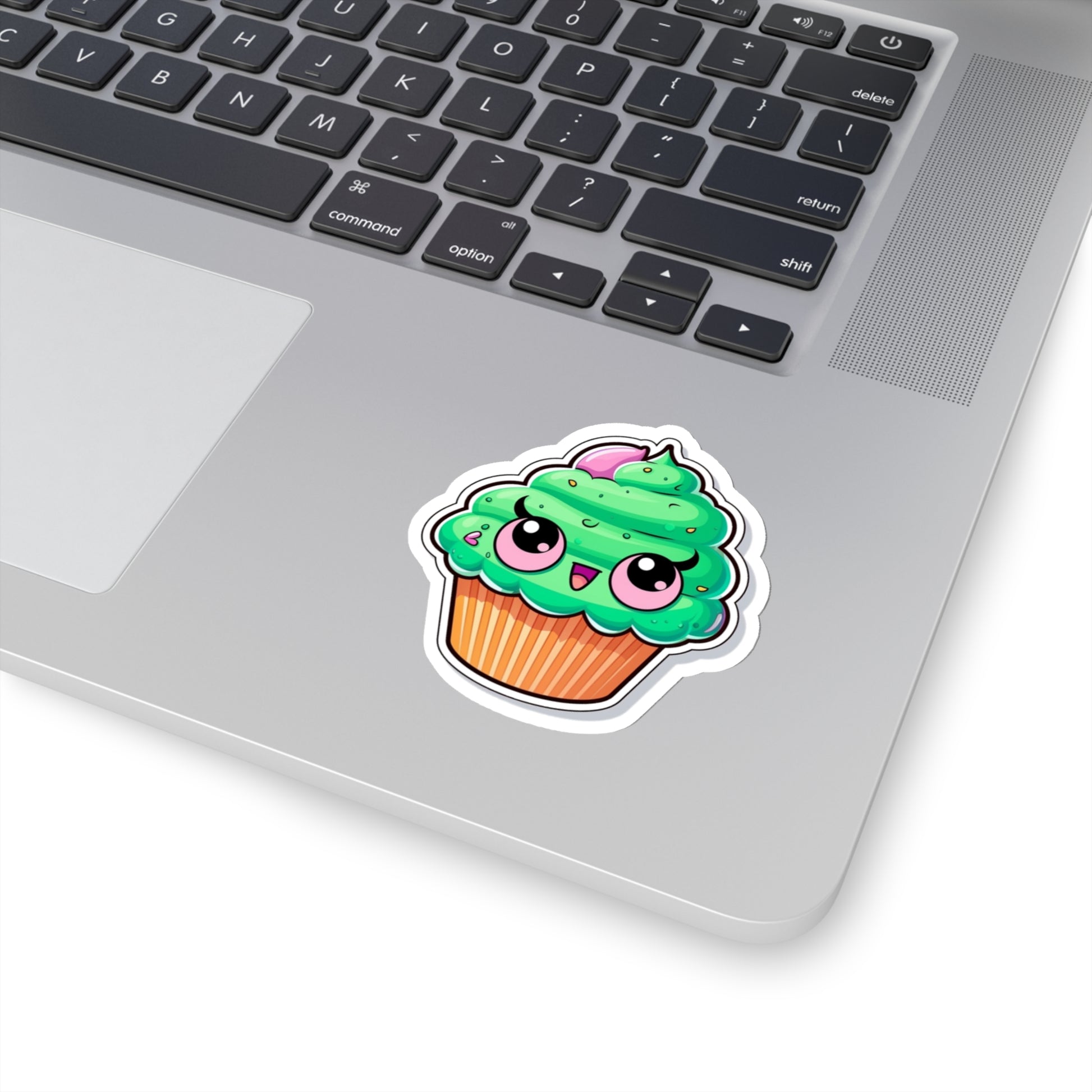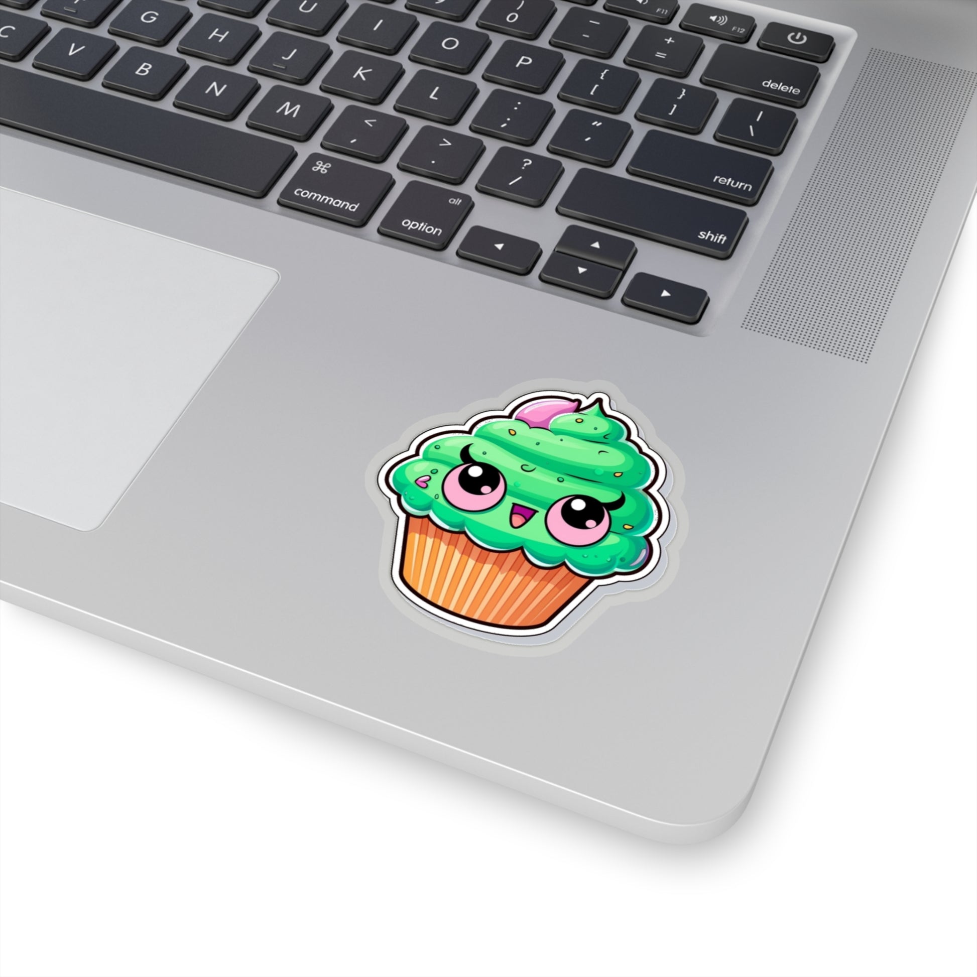 , a delightful addition to your collection of cute and whimsical decorations! This charming sticker features a cute green cupcake with pink eyes, adding a touch of sweetness to any surface.